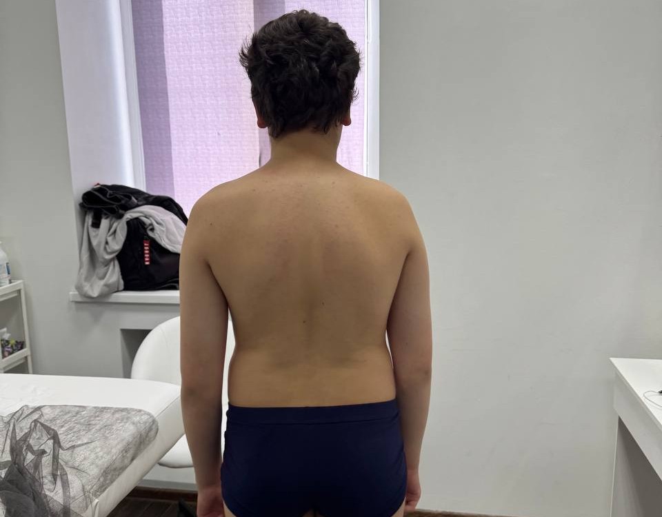Андрей обратился с выраженным сколиозом и нарушением осанки, которые развивались на протяжении 3 лет. Родители заметили искривление позвоночника и асимметрию плеч. На первом комплексном приеме была проведена детальная диагностика, применены мягкие мануальные техники для коррекции положения позвонков и физиотерапия для закрепления результата. После приема был составлен индивидуальный план ЛФК с онлайн-сопровождением для домашних занятий.