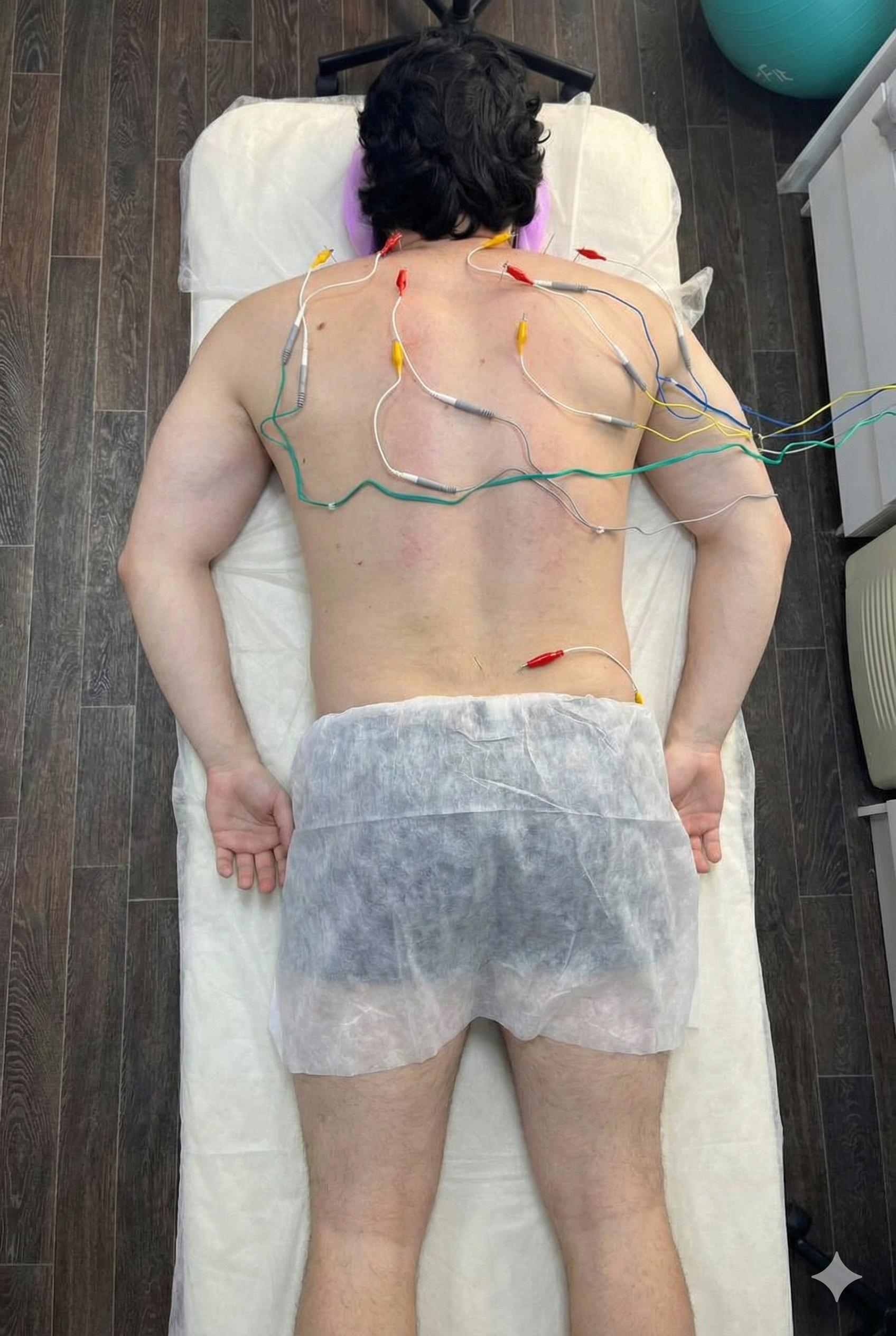 Дмитрий обратился с постоянными болями в межлопаточной зоне, которые значительно мешали работе. Будучи офисным сотрудником, он проводил за компьютером более 8 часов в день, что привело к развитию миофасциального болевого синдрома и мышечным спазмам в грудном отделе позвоночника. На первом комплексном приеме была проведена диагностика и выявлены триггерные точки. За 3 сеанса с применением ударно-волновой терапии для разрушения триггерных точек, магнитотерапии высокой интенсивности (SIS) для снятия воспаления и электро-аккупунктуры для обезболивания удалось полностью устранить болевой синдром. Были подобраны индивидуальные упражнения для профилактики рецидивов.