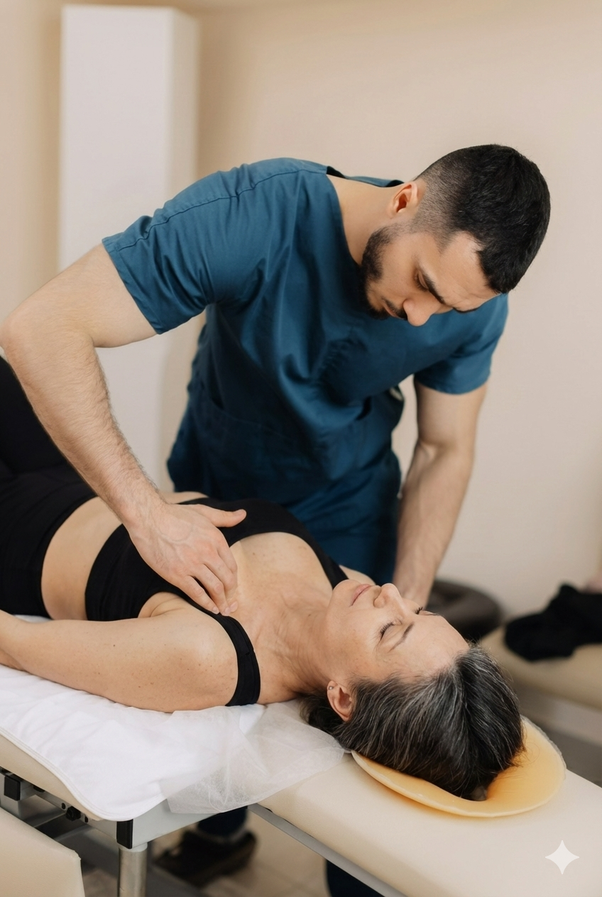 Дмитрий обратился с постоянными болями в межлопаточной зоне, которые значительно мешали работе. Будучи офисным сотрудником, он проводил за компьютером более 8 часов в день, что привело к развитию миофасциального болевого синдрома и мышечным спазмам в грудном отделе позвоночника. На первом комплексном приеме была проведена диагностика и выявлены триггерные точки. За 3 сеанса с применением ударно-волновой терапии для разрушения триггерных точек, магнитотерапии высокой интенсивности (SIS) для снятия воспаления и электро-аккупунктуры для обезболивания удалось полностью устранить болевой синдром. Были подобраны индивидуальные упражнения для профилактики рецидивов.